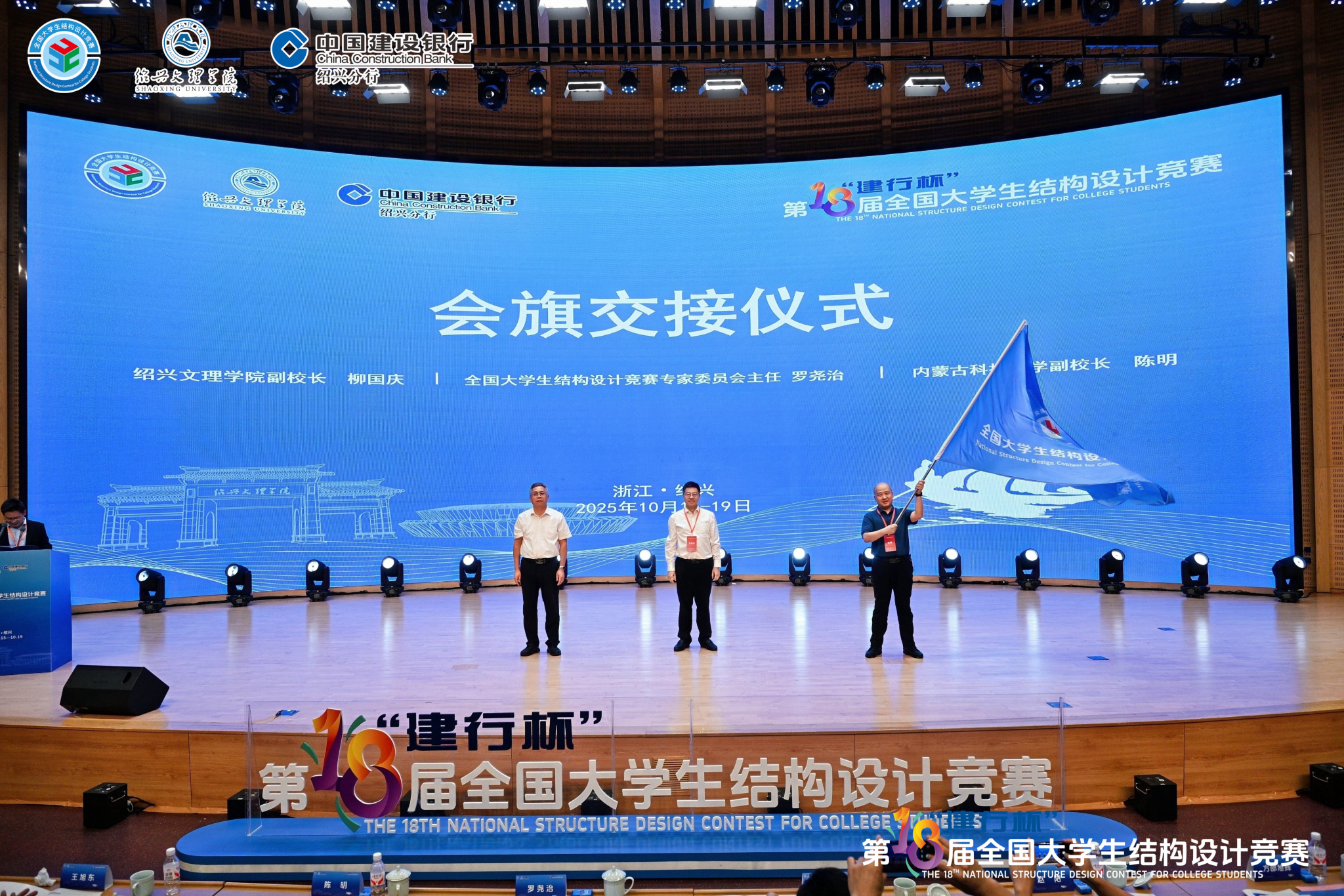 2026年10月19日,在第十八届全国大学生结构设计竞赛闭幕式上,国产无码-国产高清无码副校长陈明从主办方手中接过赛旗,标志着学校正式全面开启2026年第十九届全国大学生结构设计竞赛的筹备工作。