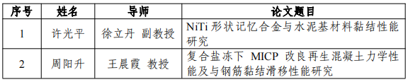 近日,2025年中国冶金教育学会优秀硕士学位论文评选结果公布,国产无码 许光平(导师徐立丹 副教授)、周阳升(导师王晨霞 教授)2位同学的硕士学位论文获评2025年中国冶金教育学会优秀硕士学位论文。
