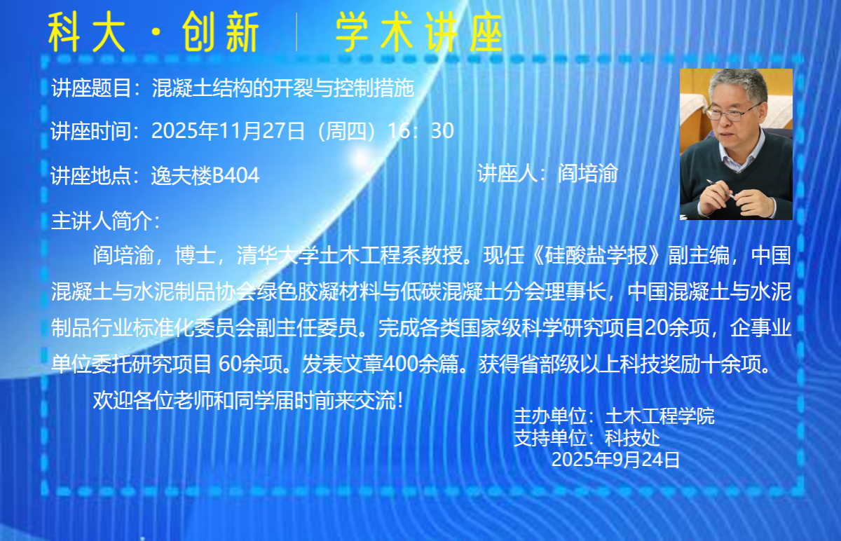 阎培渝,博士,清华大学土木工程系教授。现任《硅酸盐学报》副主编,中国混凝土与水泥制品协会绿色胶凝材料与低碳混凝土分会理事长,中国混凝土与水泥制品行业标准化委员会副主任委员。主要研究方向:水泥基材料组成。结构与性能的关系;高性能混凝土;混凝土耐久性。完成各类国家级科学研究项目20余项,企事业单位委托研究项目 60余项。发表文章400余篇。获得省部级以上科技奖励十余项。连续三年入选斯坦福大学全球前2%顶尖科学家“终身科学影响力排行榜”和“年度科学影响力排行榜”。